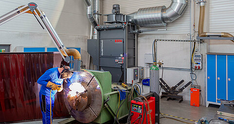 Six extraction arms each allow the targeted capture of dust and welding fumes directly at the point of origin.