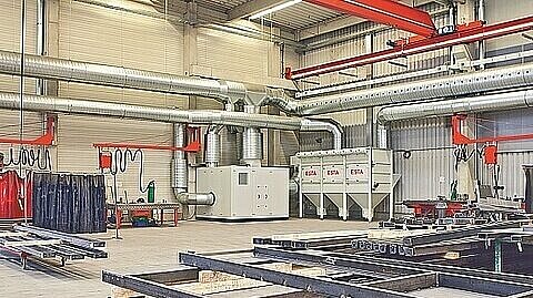 The hall extraction system for welding fumes at FAIST Anlagenbau in Krumbach relies on ESTA Push Pull mixing ventilation. This ensures optimum air circulation. The main technical details of this system are: